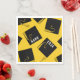 Las toallas creativas para fiestas grad con tapones negros y dorados de graduación sobre fondo amarillo. Para personalizar el texto de edición para añadir su nombre y el año de clase superior.