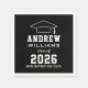Las servilletas modernas de la fiesta de graduación cuentan con una tapa de grado con un diseño sencillo y moderno de tipografía blanca que se puede personalizar con el nombre del graduado y la escuela. El fondo negro se puede personalizar para que coincida con cualquier color de tema escolar o fiesta.
