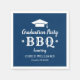 Las servilletas de la fiesta de graduación de estilo rústico y casual BBQ / barbacoa presentan fuentes occidentales y modernas, acento de tapón de grado y un color de fondo azul marino que se puede modificar a otros colores de la escuela.