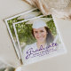 Las servilletas modernas de la fiesta de graduación incluyen una foto personalizado con texto superpuesto. Reemplace fácilmente la imagen de muestra con una foto de su graduado. La palabra "Graduado" aparece en el guión de escritura a mano en color púrpura, con el nombre, la escuela y el año de graduación a continuación en letra sans serif. Una superposición de degradado blanco ayuda a hacer que el texto púrpura aparezca. Ideal para graduación de secundaria o universitaria.