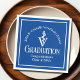 Esta moderna servilleta de papel para la fiesta de graduación de la escuela de medicina veterinaria azul personalizado muestra el nombre del graduado universitario en un elegante guión blanco para la clase de 2024. Personalizar en su universidad bajo el veterinario médico caduceus para una gran decoración de graduación conmemorativa para una DVM.
