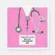 Las servilletas del partido de graduación de la Facultad de Medicina incluyen exfoliaciones de hospital rosadas, un estetoscopio y cuchillo del ejército suizo. Para personalizar el texto de edición para agregar el nombre del médica.