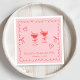 Las servilletas de la moderna soltera rosa y roja, inspiradas en la moda retro, con un marco ondulado adornado con arcos de coqueta, brillantes ilustraciones de corazones dibujados a mano y copas de cóctel de margarita, y la "Bachelorette Party" y el nombre de la novia exhibida en un libreto divertido y lúdico.