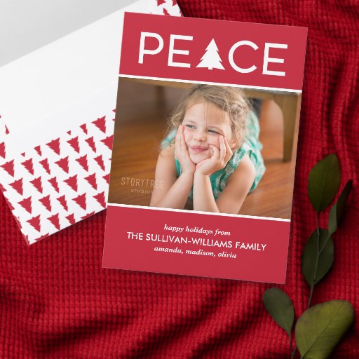 Organiza una fiesta festiva con servilletas de papel con un patrón de árbol geométrico blanco sobre un fondo rojo. En una banda roja al otro lado de la parte inferior, se puede leer "paz, amor y alegría" en un alfabeto blanco encima de un nombre de personalizable con un sencillo tipo de letra sans serif blanco. Personalízalo añadiendo un saludo personalizado, nombre familiar y/o el año en la barra lateral. Para ver el diseño del patrón de árboles blancos sobre Navidades rojos en otros elementos, haga clic en el enlace de la colección "Artes rocosas" que aparece a continuación. Imagen creada digitalmente. Copyright ©Claire E. Skinner. Todos Los Derechos Reservados.