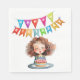 Una colorida y feliz Fiesta de cumpleaños con toallas diseñadas con la Chica de cumpleaños mostrando sus velas con un cartel de cumpleaños feliz