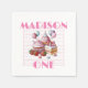 Celebra el primer cumpleaños de tu pequeña con nuestras servilletas fiestas de quequitos de personalizable. Este encantador diseño está decorado con caramelos adornados con rayas de polka rosa sobre un fondo blanco. Ya sea una pequeña reunión o una gran celebración, este diseño marca la pauta para un dulce y memorable fiesta.