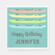 Haga de su fiesta un chapoteo con estas servilletas fiestas personalizadas. Cuentan con ilustraciones de kayaks en tonos pastel bonito de coral de color rosa, amarillo pálido, verde limón y azul acuático, con un fondo azul verde azulado o turquesa. Estos suministros de fiesta con temática kayak están listos para ser personalizados con su propio saludo y nombre en letras de color gris carbón.