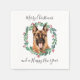 Acoger la temporada de vacaciones fiestas de tus Navidades con este elegante Pastor Alemán de Feliz Navidad en una navidad de diseño de flores servilletas fiestas y decoración a juego. Las servilletas de vacaciones de pastor alemán cuentan con un perro acuarela en una corona verde y roja con bayas y heces. Esta servilleta de pastor alemán será una de las favoritas de los amantes del pastor alemán, de los perros y de los animales. Visite nuestra colección para ver las tarjetas de navidades de pastor alemán, decoración y regalos. DERECHOS RESERVADOS © 2020 Judy Burrows, Black Dog Art - Todos los derechos reservados. Pastor Alemán Elegante Perro Feliz Nochebuena
