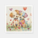 Acuarela de cachorros de patchwork con corazones para Día de San Valentín. Buen dicho, dulce carta.