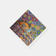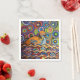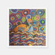 pintura con motivos coloridos con un pato en el medio nadando en aguas coloridas
