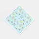 Patrón lindo con artículos para bebés en el fondo azul: peluche, ducky de goma, pacificador, biberón, cochecito... Por un niño.