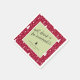 Caligrafía moderna "comer beber + estar casado" superpuesta a cuadrícula amarilla verde con servilletas de papel rojas con patrón de vegetación navideña.