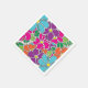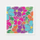 Esta impronta floral vibrante se parece a un vaso de colores modernos con sus líneas blancas alrededor de las flores y las hojas. Los colores son rosa, violeta, naranja, verde azulada y con tonos verdes en las hojas.