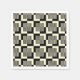 Este modelo moderno de mediados de siglo presenta formas geométricas negras y marrones.