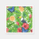 Patrón acuarela con tocan, mariposa, hibisco y hojas tropicales. Pinté elementos para el patrón con acuarelas en papel, luego los escaneé e hice el patrón en Illustrator