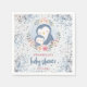 Las servilletas de Baby Shower que incluyen a mamá y bebé pingüinos en un fondo azul y rociadores falsos purpurinas. Personaliza con un nombre.
