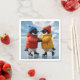 A charming scene where two penguins glide gracefully across a glistening frozen Arctic lake, with a cozy igloo nestled in the background, creating a perfect winter wonderland