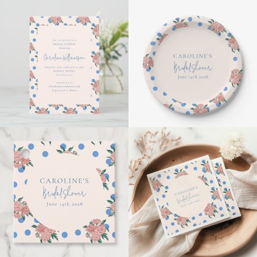 Blue Polka Dot Floral Bridal Shower DecorationsDiseñado por Opal Ellery