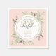 Servilletas de papel para el primer cumpleaños de Little Miss ONEderful con elegantes elementos verdes sobre fondo rosa y tipografía elegante. Diseñado por Thisisnotme©