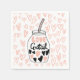 Perfecto fiesta de San Valentín cóctel servilleta con el corazón ondulado artístico patrón sin fisuras con taza en el medio y un guión personalizado "cóctel de amor"