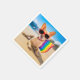 Esta linda foto muestra a un perro chihuahua en la playa llevando una bandera del Orgullo Gay de color arcoiris.