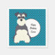 Perro Schnauzer lindo con fondo de puntos polka negro y azul y texto de personalizable central