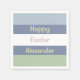 Azul pastel horizontal azul claro, verde claro y polvoriento patrón rayado azul y texto de personalizable: Feliz Pascua. Haga clic en editar para cambiar el texto y el nombre a su gusto,