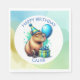 Toallas personalizadas de papel con temas de chipre con temas de azul y verde. Un capibara acuarela sosteniendo un globo y un regalo de cumpleaños. ¡Cuidado para los niños de cualquier edad!