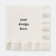 Estilo: Comida acuñada Pequeños detalles hacen la gran diferencia... luz de velas, iluminación ambiental e incluso delicadas toallas de papel que son personalizados y personalizadas. Estas servilletas disponibles en blanco y crudo le darán esa pincelada de estilo a tu decoración, ¡porque el secreto reside en los detalles! Dimensiones: 6.5" x 6.5" w (doblado), 3 se imprimen a todo color sobre la elección de servilletas blancas o de color crudo Estilos de servilleta acuñados o estándar disponibles Vendidos en cantidades de 50 Comprar a granel y ahorrar! Este producto es un producto de contacto con alimentos Consejo: al pedir servilletas, la regla general es de 3 servilletas por huésped. Consejo de diseño: para garantizar la mejor calidad de impresión, ten en cuenta que el área personalizable de este producto mide 4.25" x 5.875". No hay sangría.