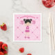 Esta servilleta adorable fiesta de cumpleaños animadora personalizado muestra un dibujo de una animadora asiática bonito con un uniforme de porrista sosteniendo pompones rosados. Personalice esta bonita decoración de cumpleaños infantil con el nombre de su chica entre el divertido patrón de corazón.