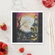 En una buena celebración, la presentación tiene tanta importancia como la comida. Estas toallas personalizadas de escena de Halloween con una casa embrujada, un listón de farolillos y un árbol trepidante pintado con acuarela, serán perfectas para una fiesta de Halloween. © Julie McIver