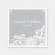 Celebra a tu boda con estas servilletas de papel personalizado con un marco de imitación blanco vintage contra un sutil fondo gris. Añade los nombres de la novia y del novio, y la fecha del boda para personalizar. También está disponible para el almuerzo y la cena. Sencillo, pero elegante, perfecto para un granero romántico, una moda de campo, vintage o al aire libre bajo el boda de las estrellas. También adecuado para cenas de ensayo y ducha de novia.