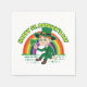 Papel Napkin con el Ilustracion de un lindo leprechaun sonriente usando un traje verde, un sombrero top mientras sostiene una hoja de shamrock, con un arco iris colorido en el fondo y un texto que dice "Feliz Día de San Patricio" Un diseño perfecto para celebrar el Día de San Patricio, dibujado por Radka2D