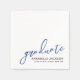 This simple and modern graduation party paper napkin features a clean layout with all text placed neatly in the bottom right corner for a sleek, understated look. “Graduate” appears in an elegant handwritten script in navy blue, paired with the graduate’s name, “Class of 2026” (or any year), and school name in classic, easy-to-read fonts.