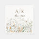 El Petite Wildflower Monogram presenta un borde de flores silvestres de color agua delicadas a lo largo del fondo y los monogramas de la pareja feliz en la parte superior, con espacio para sus nombres y fecha de boda.