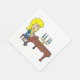 Una mujer con el cabello amarillo tocando el piano. Este diseño parece realmente efectivo en estas servilletas de papel