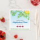 Esta servilleta de papel picnic del barrio de verano ofrece un diseño de colores vivos que incluye un sol y ramas de hojas verdes y se acentúa con un gráfico de sandía cortada.