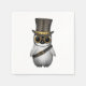 Este diseño único presenta un pingüino bebé con sombrero de punta y gafas. El lindo pájaro pequeño está mirando hacia adelante con la cabeza ligeramente inclinada dándole una mirada curiosa. Los acentos de latón y cuero del gorra, las gafas y la correa le dan a este adorable diseño un aspecto de steampunk
