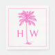 Servilleta De Papel Pink and White Palm Palmetto Tree Monogram