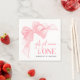 This cute birthday napkin design features a playful watercolor bow in the top left corner, adding a sweet and stylish touch to your celebration. The phrase “Girls Just Wanna Be ONE” appears in the center in a mix of fun script and classic serif fonts, creating a cheerful, girly vibe that perfectly suits your little one’s first birthday. Ideal for a party table, dessert station, or drink setup, this napkin adds charm to any setting. All text, fonts, and colors can be customized to match your birthday theme and decor.