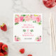 This fun and whimsical wedding napkin features watercolor pink roses and foliage. The text combines handwritten script and serif fonts for a stylish and modern look. This is perfect for a spring or summer rustic wedding.