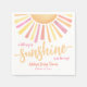 This bright and cheerful napkin design features a vibrant sun at the top, with warm rays in shades of yellow, orange, pink, and red, adding a joyful touch to your celebration. Below the sun, "A Little Ray of Sunshine" is displayed in a playful mix of modern fonts and bold script typography.