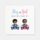 These playful napkins feature a Black baby boy in a blue car and a Black baby girl in a pink car, each with a pacifier, racing side by side. A fun and energetic design that adds charm to your gender reveal party—perfect for celebrating Team Boy vs. Team Girl.