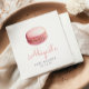 These cute baby shower napkins feature a watercolor image of a pink French macaron cookie. Add the name of the mother-to-be in whimsical pink handwriting script, along with the date in charcoal gray sans serif font. Ideal for a girl's baby shower.