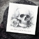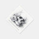 Servilletas con una pintura de acuarela de una calavera rodeada de rosas, y tu nombre u otro texto personalizado a la derecha.