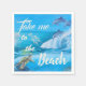 Delfines en el surf, tortugas marinas bajo el agua y gente jugando en la playa, idílica pintura costera con "llévame a la playa" en tipografía moderna.