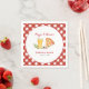 Casual y divertido "Pizza y brew." Las parejas duchan servilletas de papel con acuarela color agua pintada a mano Pizza y cerveza con borde de gingham rojo y blanco. Perfecto para la ducha o el compromiso casual de verano en el patio trasero.