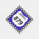 Portón trasero con estilo en su próxima carrera de motocross con servilletas de papel personalizadas. Estas servilletas tienen un número de placa blanco que está listo para ser personalizado con su nombre y número de bicicleta. La placa numérica se coloca sobre un fondo azul brillante con un borde de bandera a cuadros negros y blancos.