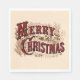Toallas de papel con palabras decorativas Feliz Navidad, flores, Holly y Berries en colores rústicos de Currier e Ives 1876 Mensaje de Feliz Navidad.