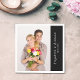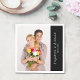 Este diseño personalizado se puede personalizar con su foto, nombre y fecha. La tipografía de escritura a mano y la fuente de fecha moderna se colocan en una línea negra, y el texto se establece verticalmente junto a la imagen. Los colores del texto blanco y del borde negro se pueden modificar en el menú Editar.